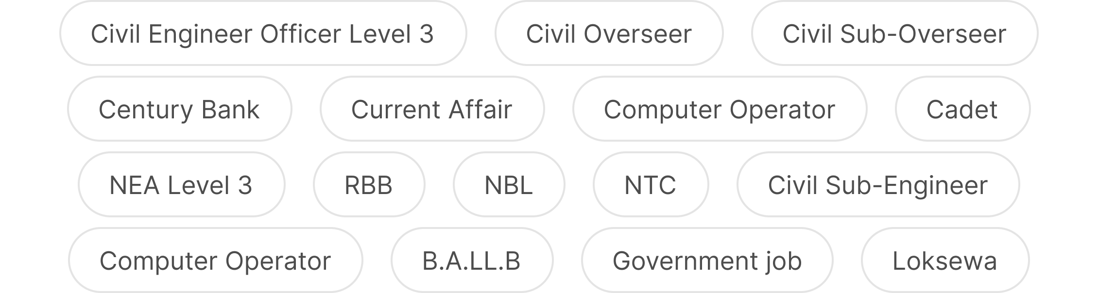 Explore and practice MCQ exams from multiple sectors in Nepal designed to match real exam patterns.